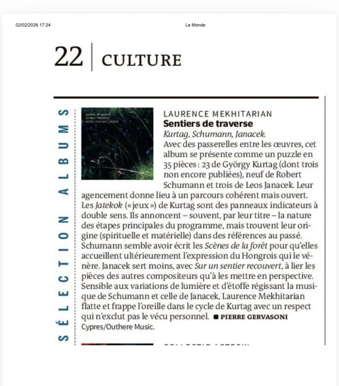Ce dimanche, pour célébrer l’arrivée du printemps et la sortie de son nouvel album, la pianiste Laurence Mekhitarian présente un programme soigneusement élaboré. Au programme : les Scènes de la forêt de Robert Schumann, des œuvres du compositeur contemporain György Kurtág, ainsi qu’une sélection d’extraits de Leoš Janáček. Grâce à ces associations librement choisies, les trois compositeurs se mettent mutuellement en valeur, offrant une expérience d’écoute originale et évocatrice. Des univers musicaux vifs, descriptifs et oniriques.